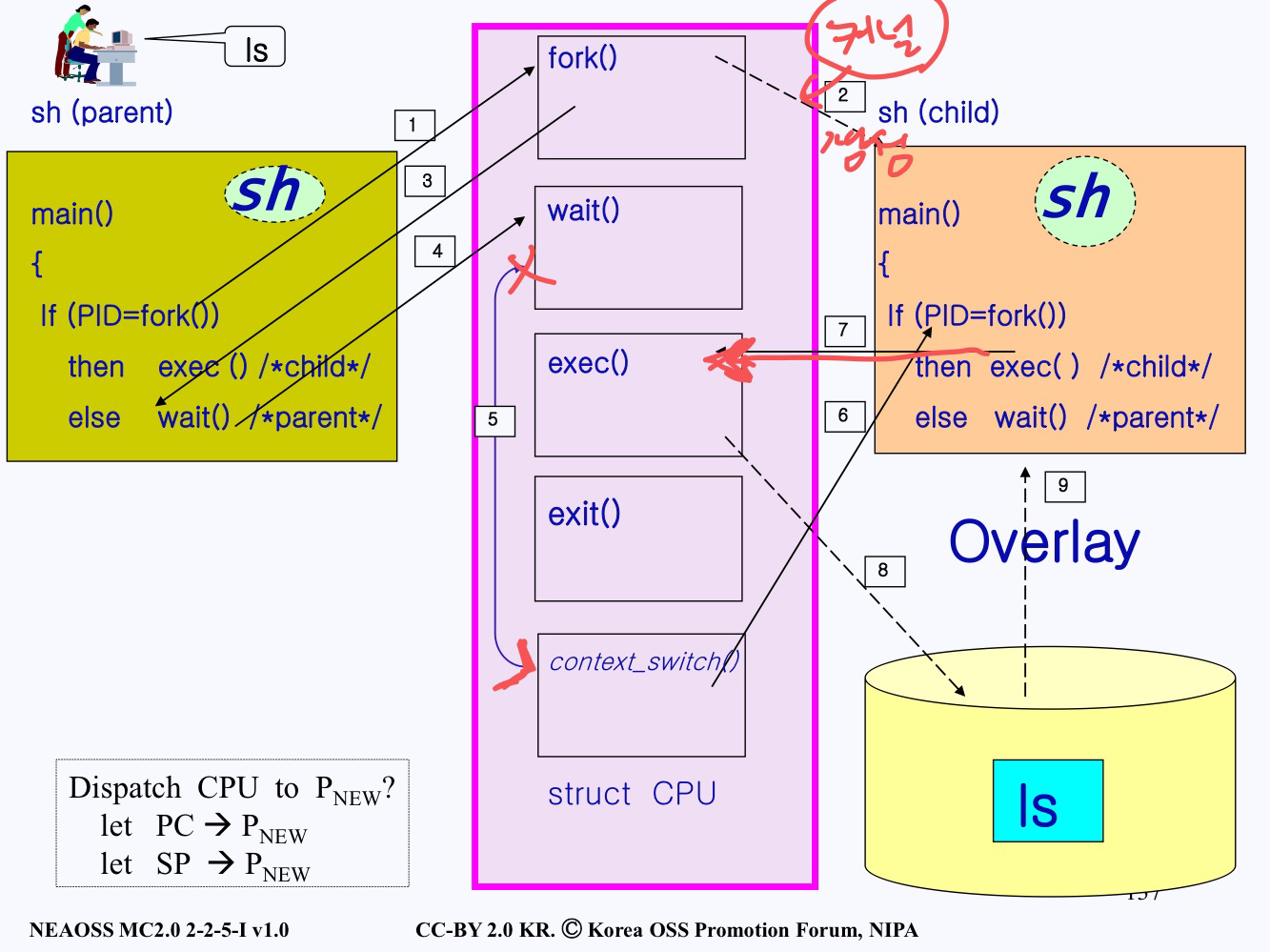 5. wait 시스템콜 터리를 하면서 context switch를 한다. 왜? 이제 저 프로세스는 자식이 끝나기 전까지 잠들어있어야 하니까!