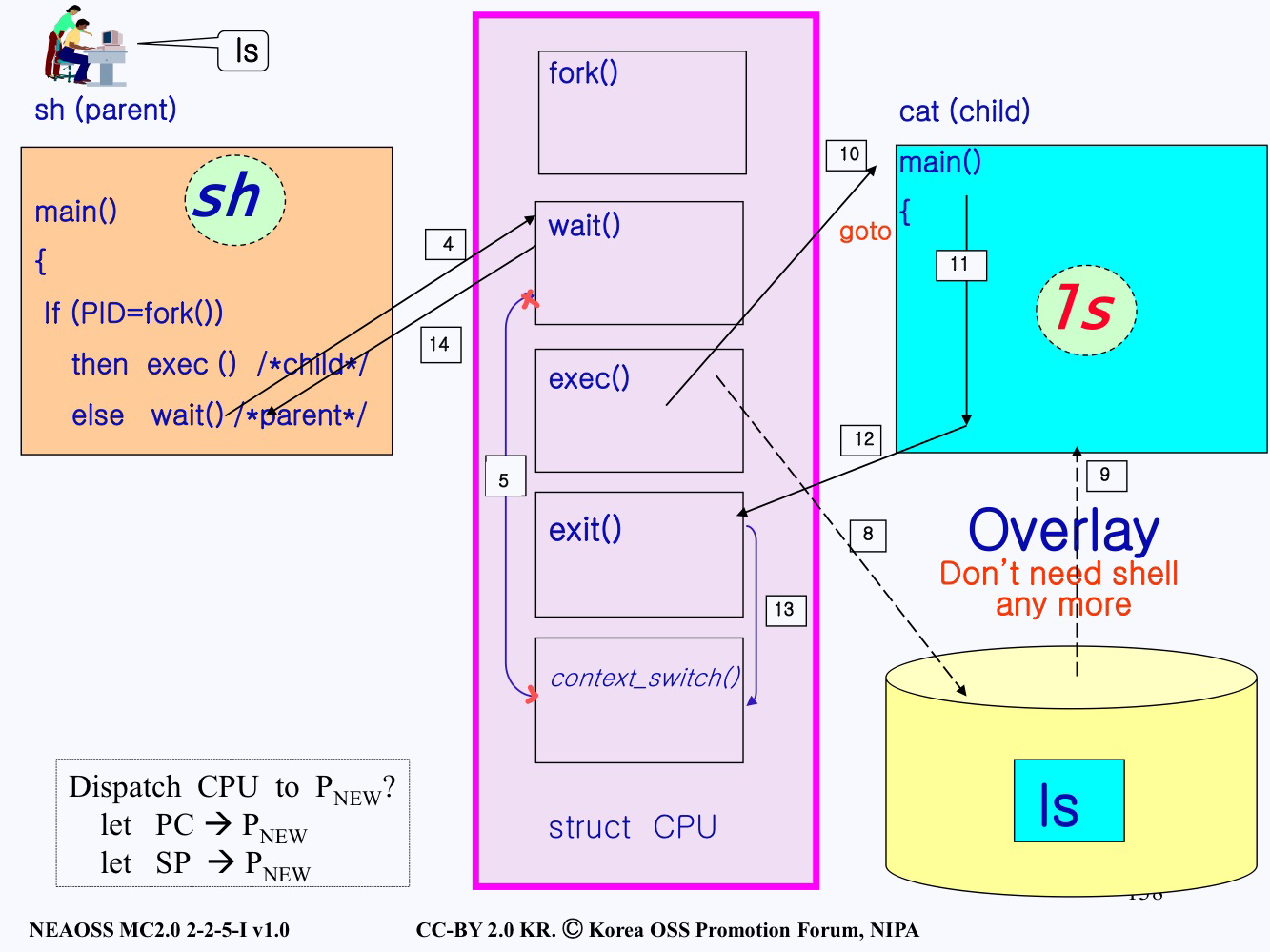 자 그다음에 커널은 자식 프로세스를 CPU 디스패치합니다.