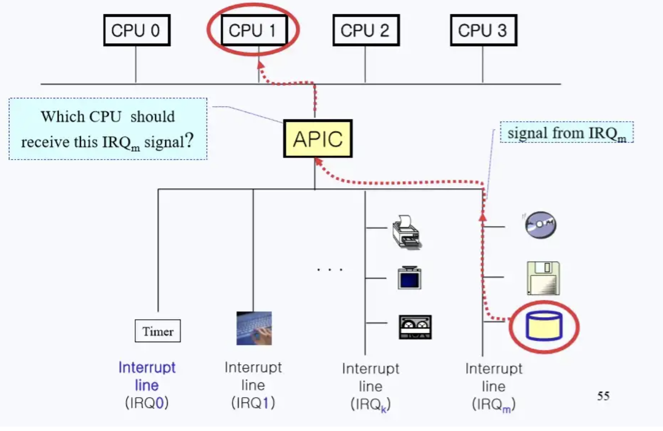 각각의 프로세스가 독립적으로 작업을 처리하는데, APIC가 어떤 프로세스가 Interrupt를 처리할지 고릅니다.
