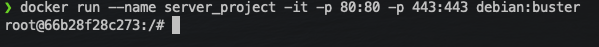 docker run --name "원하는 컨테이너 이름" -it -p 80:80 -p 443:443 debian:buster